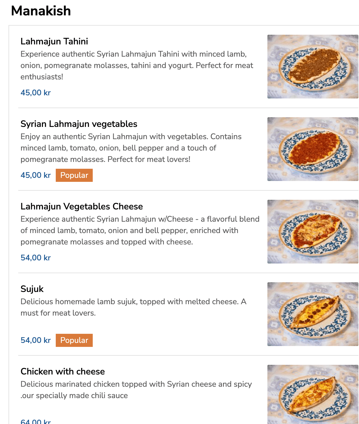 Price example: Falafel wrap starts from 119 NOK/ €11.50 while a Chicken Shawarma will set you back 119 NOK/€11.50 too
