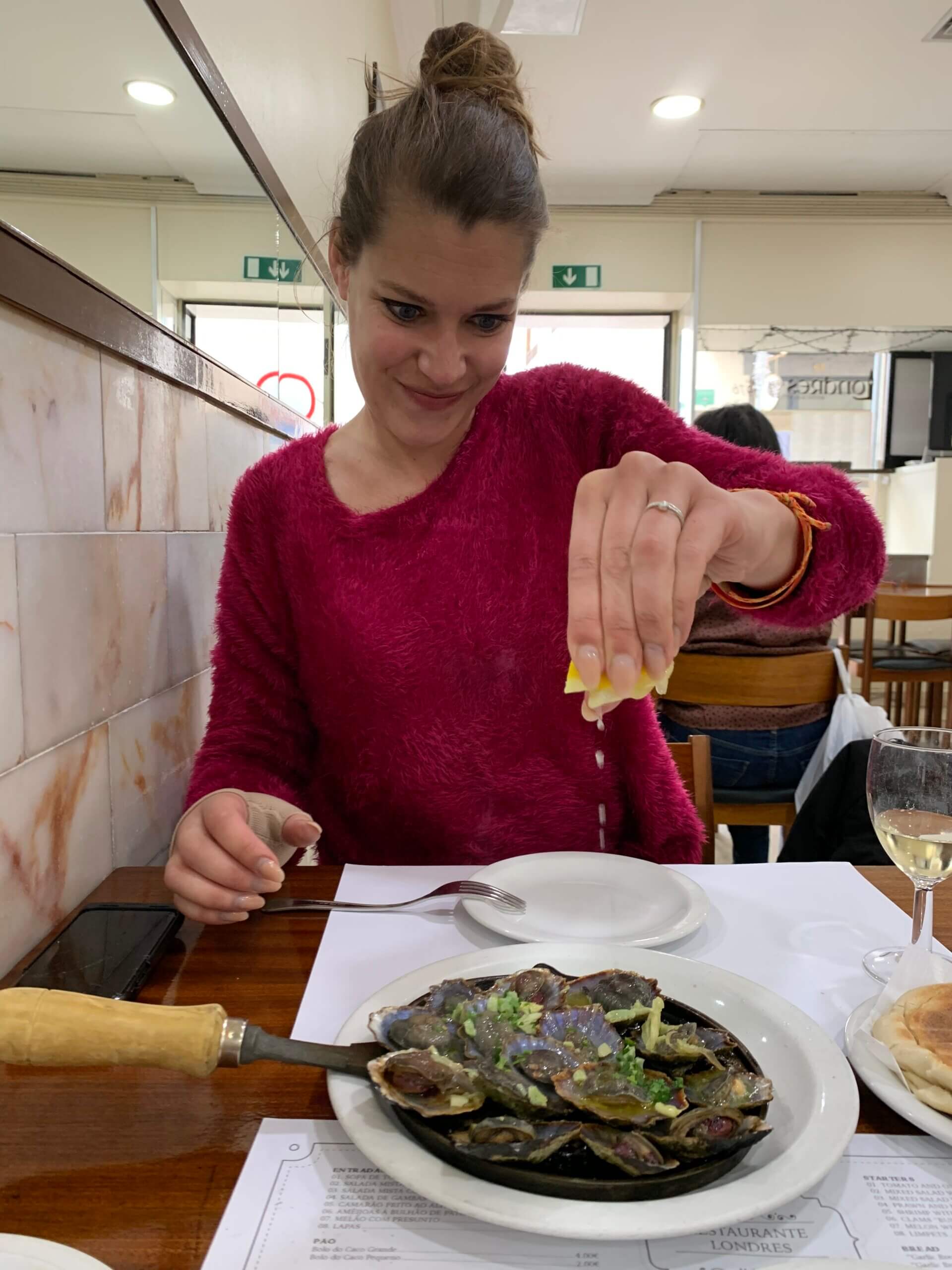 Lapas : Limpets. They are akin to mussels, have a nice meaty consistency. They are grilled with garlic and lots of butter so you definitely want some Bolo do Caco to dip in that sauce!