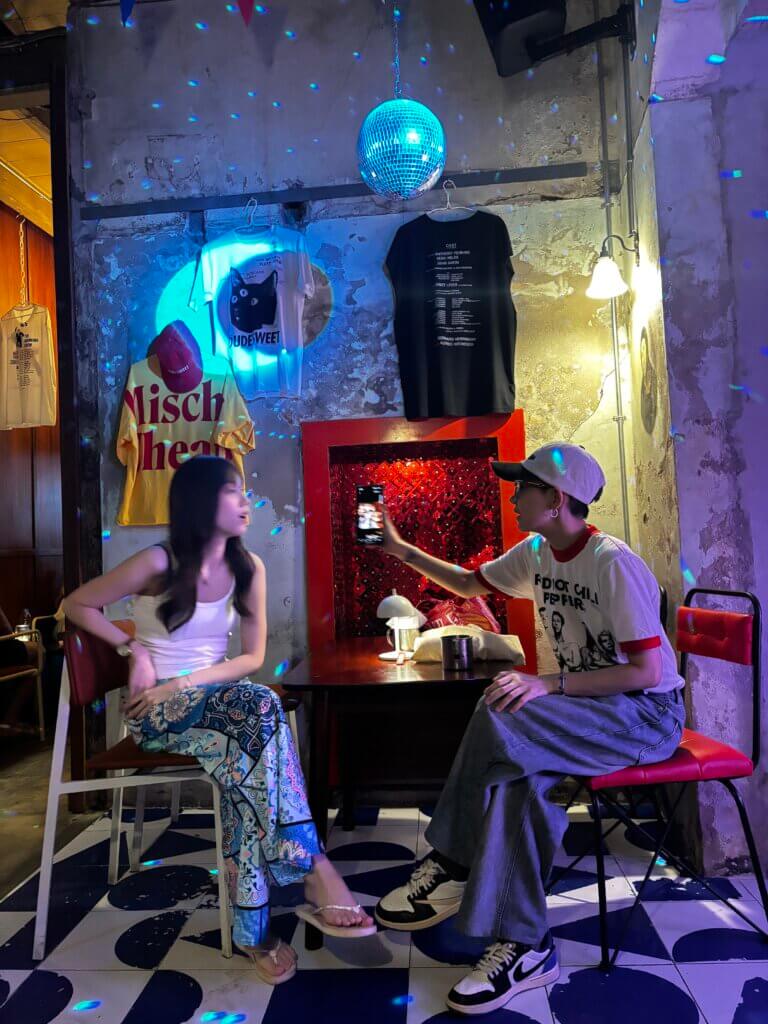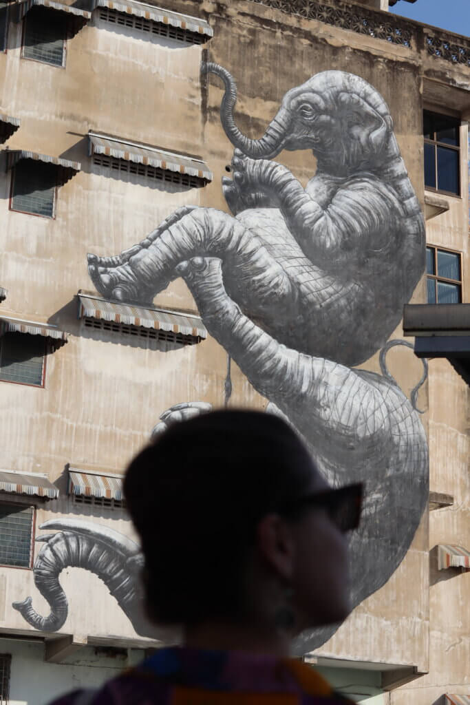 Highlights here include the black and white elephant art with two elephants, painted by ROA, the Belgian artist. I love Mischa Cheap, a colorful music bar with a great alternative soundtrack and a wonderful nostalgic charm which transports you to a different time and era of Bangkok.